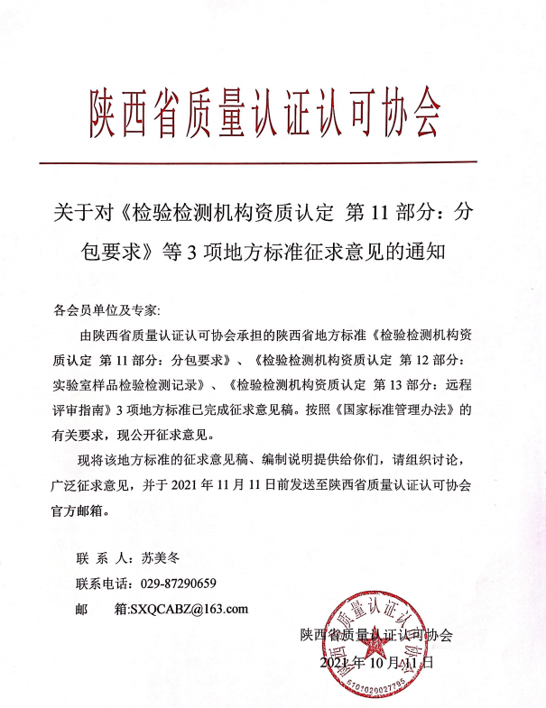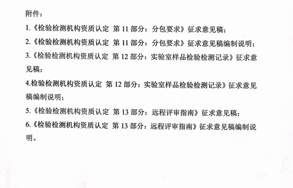 01 《检验检测机构资质认定 第11部分:分包要求》征求意见稿