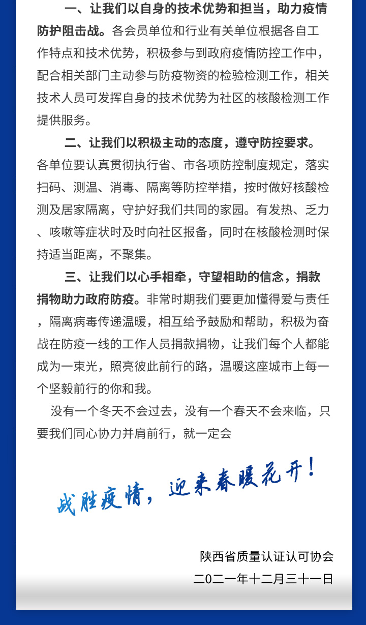陕西省质量认证认可协会倡议书