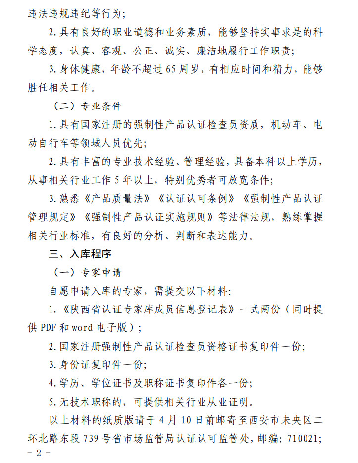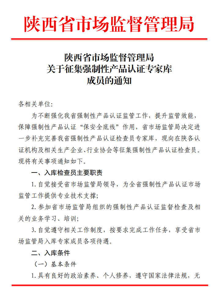 陕西省市场监督管理局关于征集强制性产品认证专家库成员的通知
